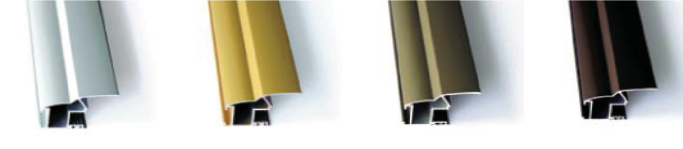 Vitlackad, Polerad aluminium, Polerad brons, Polerad guld, Polerad mörkbrun, Polerad mörkgrå, Matt aluminium, Matt brons, Matt guld, Matt mörkbrun.